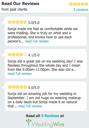 Keep on reviewing me! Sep 8 Written By Sonja Gjokaj Thank you to all my spring/summer 2014 brides for reviewing me on yelp and WeddingWire Sonja Gjokaj